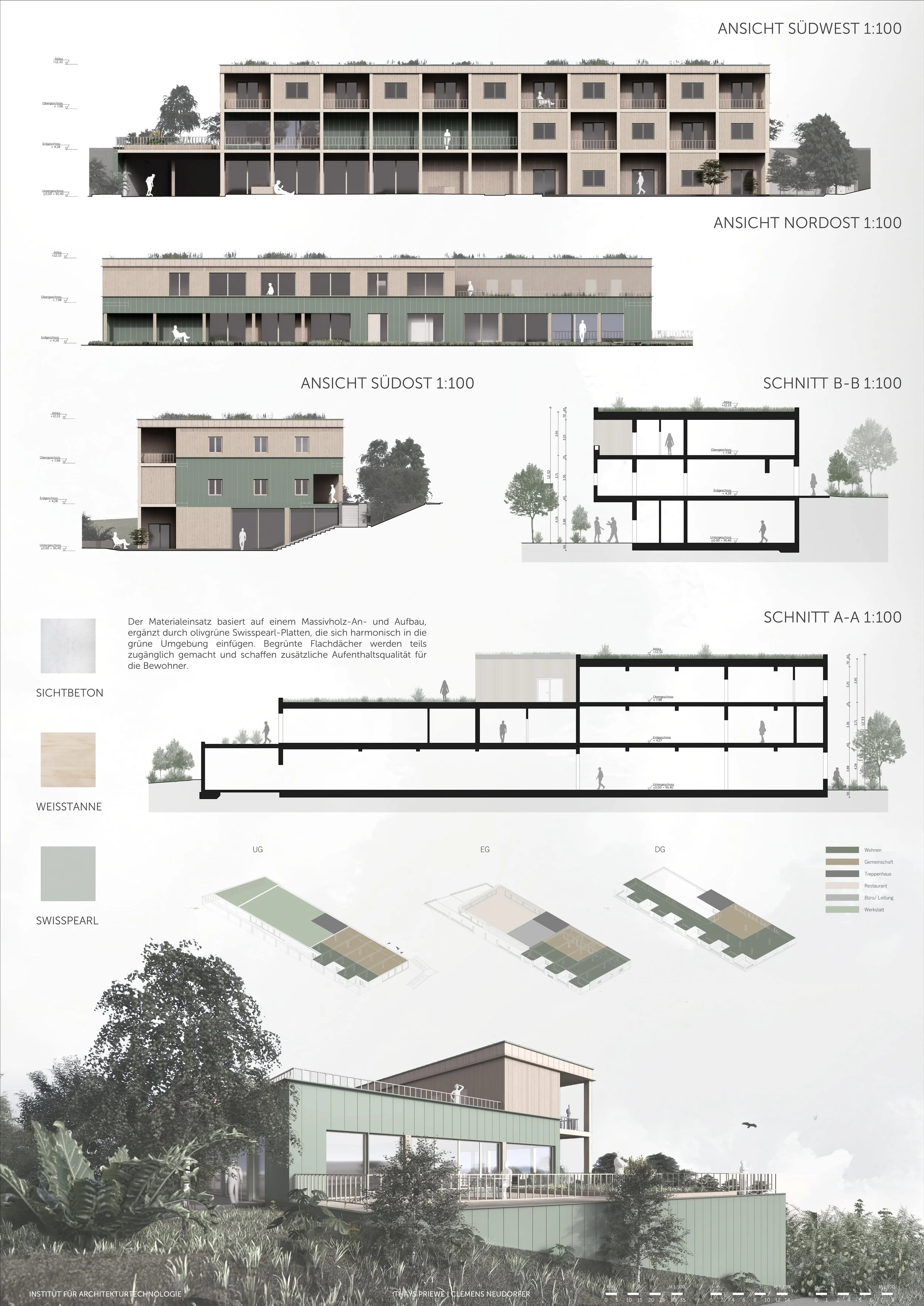 Im 5.Semester lag der Schwerpunkt auf der Ausarbeitung des Entwurfs sowie der Erstellung der Einreichplanung. Die primäre Aufgabenstellung konzentrierte sich dabei insbesondere auf die konstruktive Durcharbeitung des Projekts und die strukturierte Aufbereitung der Einreichunterlagen.